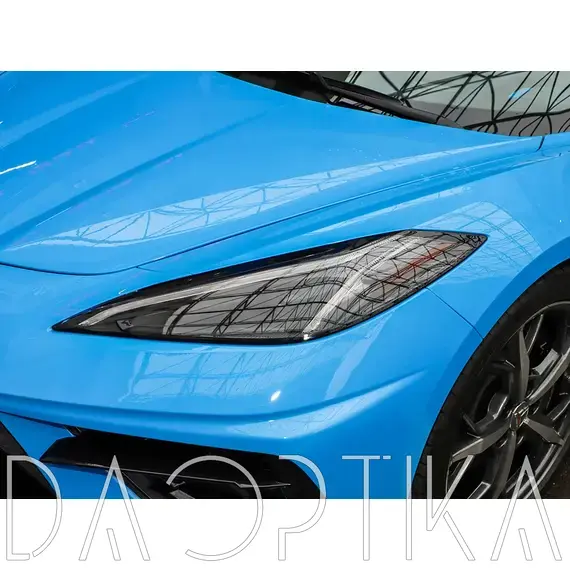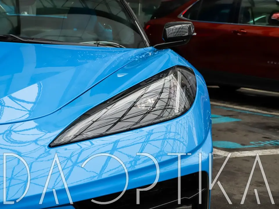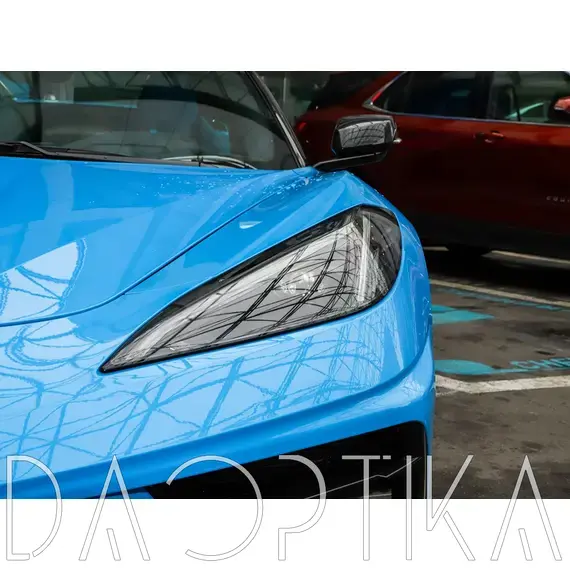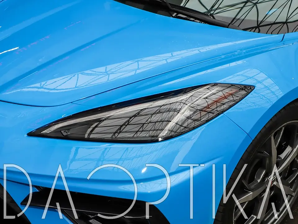 Стекло левой фары из оптического поликарбоната с защитным лаком для замены оригинального стекола фары на Chevrolet Corvette 2020-2024 C8