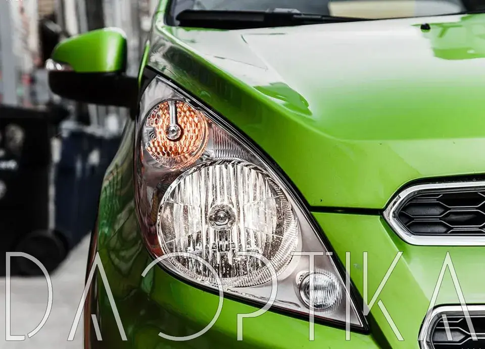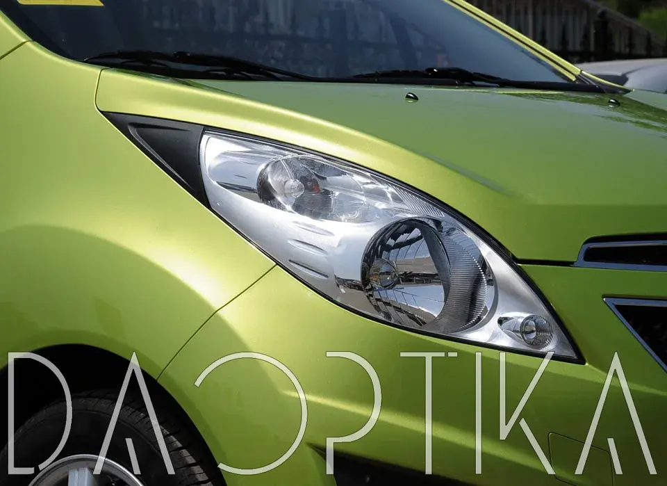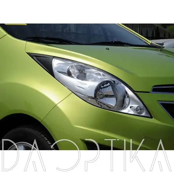 Стекло левой фары из оптического поликарбоната с защитным лаком для замены оригинального стекола фары на Chevrolet Spark 2009-2016 3 поколение