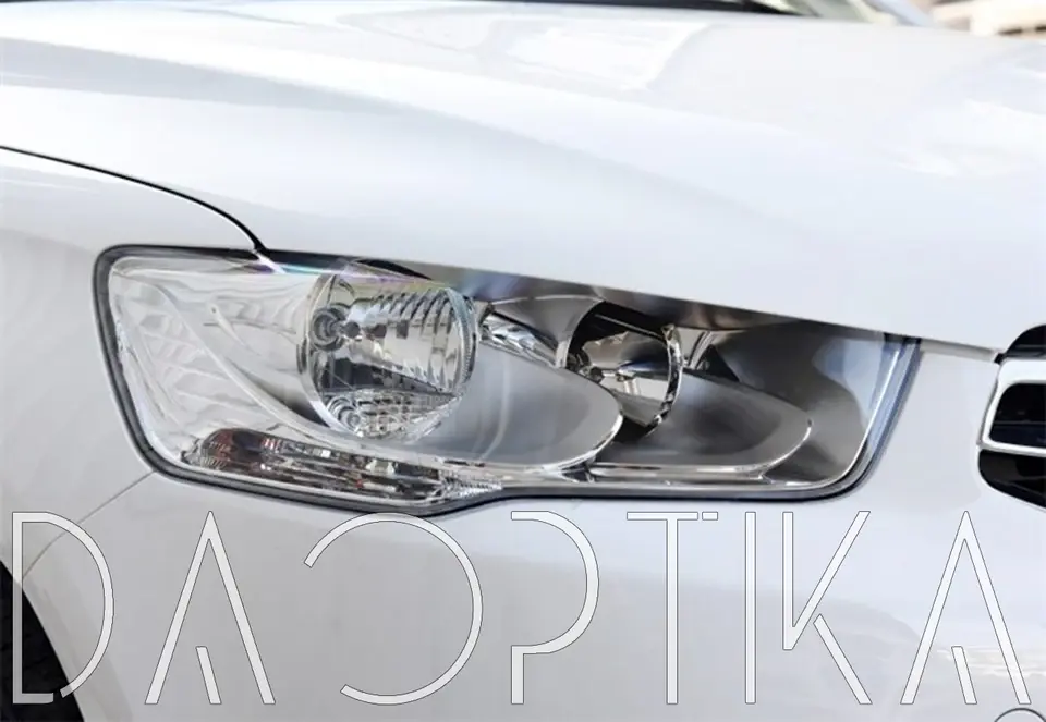 Стекло левой фары из оптического поликарбоната с защитным лаком для замены оригинального стекола фары на Citroen C-Elysee 2012-2017 2 поколение