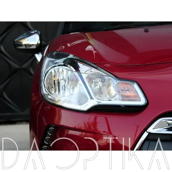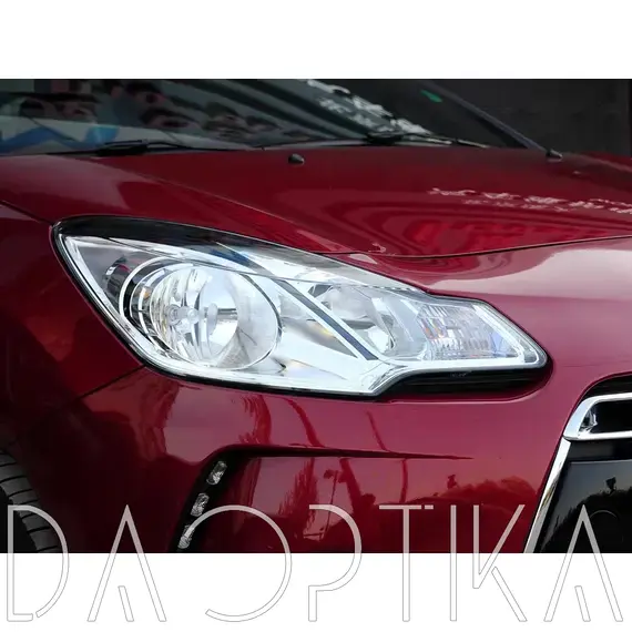 Стекло левой фары из оптического поликарбоната с защитным лаком для замены оригинального стекола фары на Citroen DS3 2009-2014 1 поколение