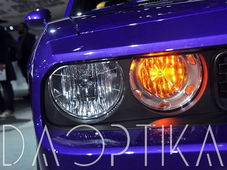 Стекло левой фары из оптического поликарбоната с защитным лаком для замены оригинального стекола фары на Dodge Challenger 2008-2014 3 поколение