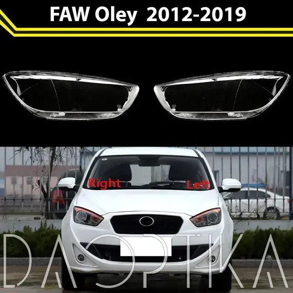 Стекло левой фары из оптического поликарбоната с защитным лаком для замены оригинального стекола фары на FAW Oley 2012-2019 1 поколение