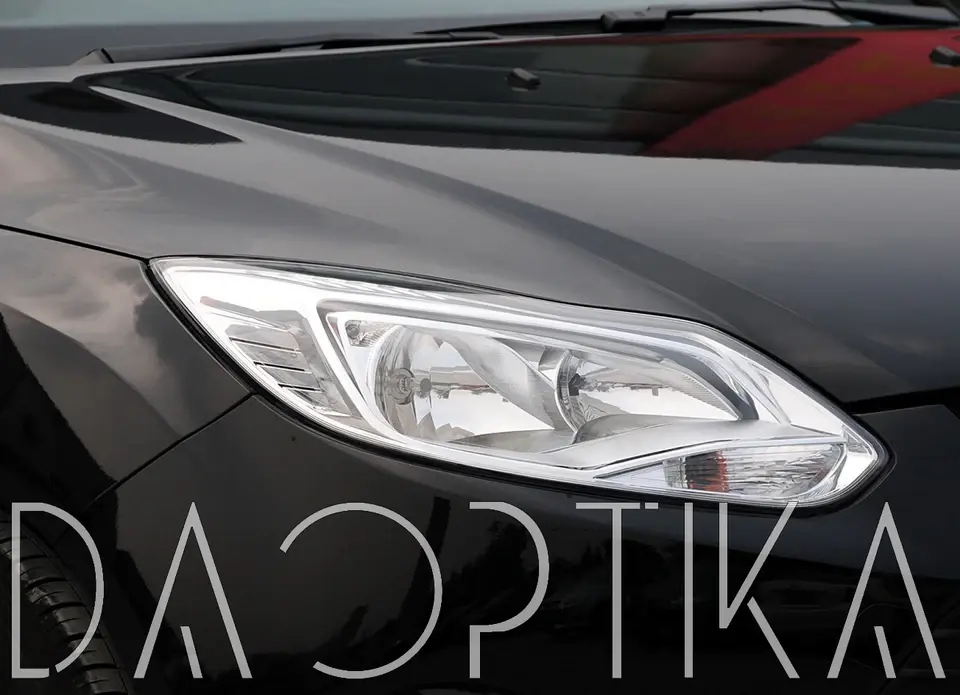 Стекло левой фары из оптического поликарбоната с защитным лаком для замены оригинального стекола фары на Ford Focus 2011-2015 3 поколение