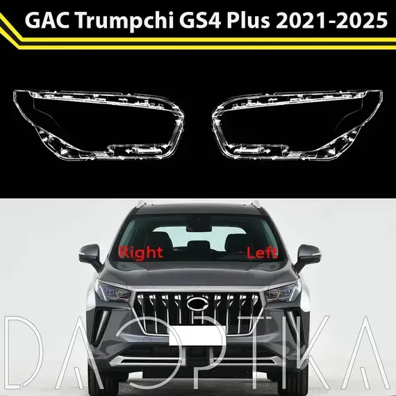 Стекло левой фары из оптического поликарбоната с защитным лаком для замены оригинального стекола фары на GAC Trumpchi GS4 Plus 2021-2024