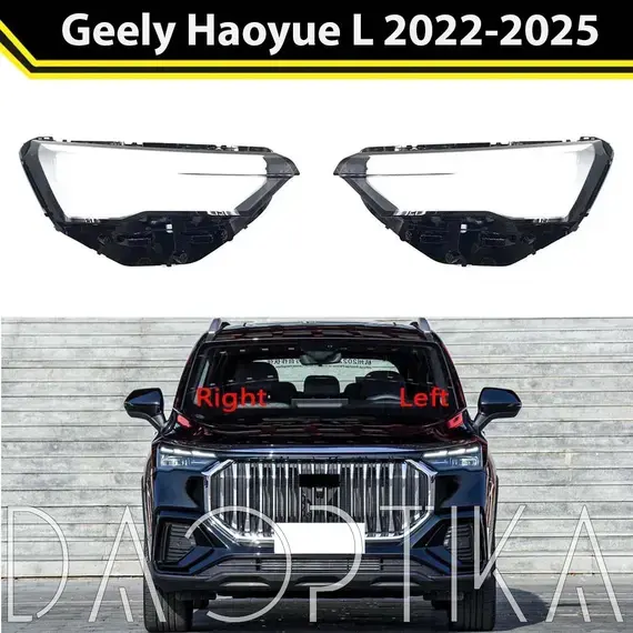 Стекло левой фары из оптического поликарбоната с защитным лаком для замены оригинального стекола фары на Geely Haoyue L 2022-2024