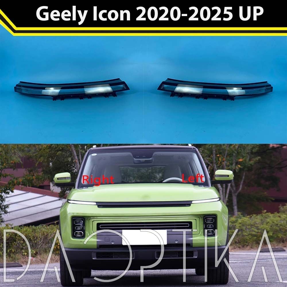 Стекло левой фары из оптического поликарбоната с защитным лаком для замены оригинального стекола фары на Geely Icon 2020-2024