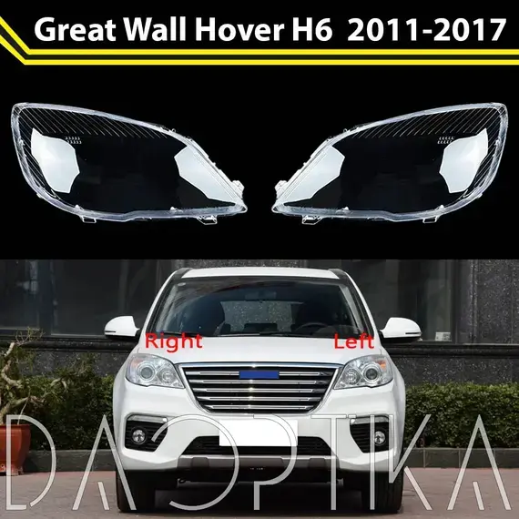 Стекло левой фары из оптического поликарбоната с защитным лаком для замены оригинального стекола фары на Great Wall Hover H6 2011-2017 1 поколение