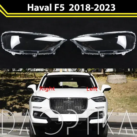 Стекло левой фары из оптического поликарбоната с защитным лаком для замены оригинального стекола фары на Haval F5 2018-2023