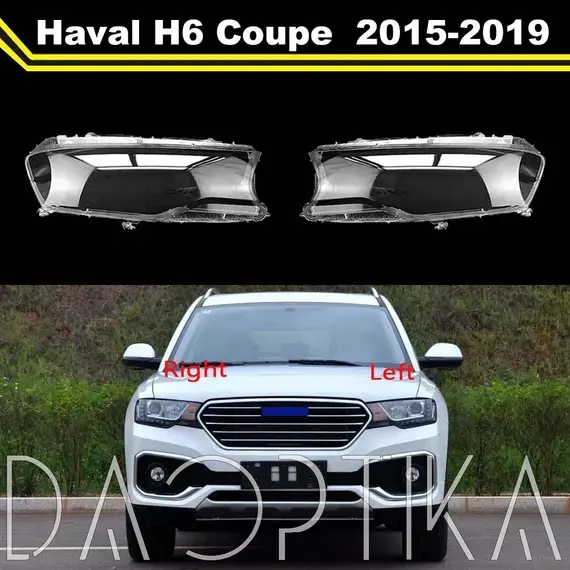 Стекло левой фары из оптического поликарбоната с защитным лаком для замены оригинального стекола фары на Haval H6 Coupe 2015-2019 1 поколение