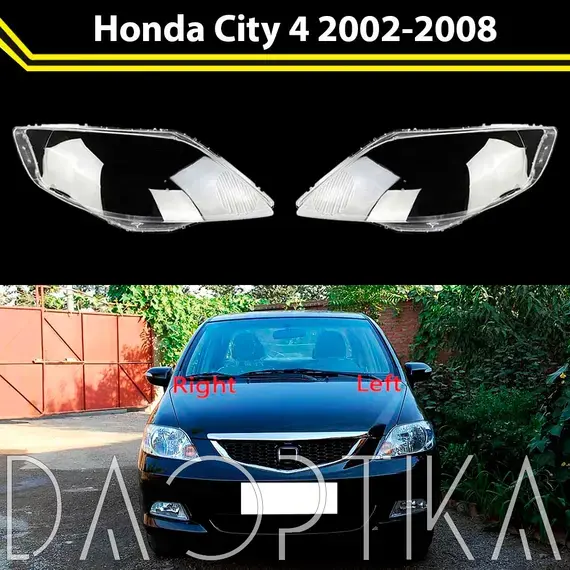 Стекло левой фары из оптического поликарбоната с защитным лаком для замены оригинального стекола фары на Honda City 2002-2008 4 поколение
