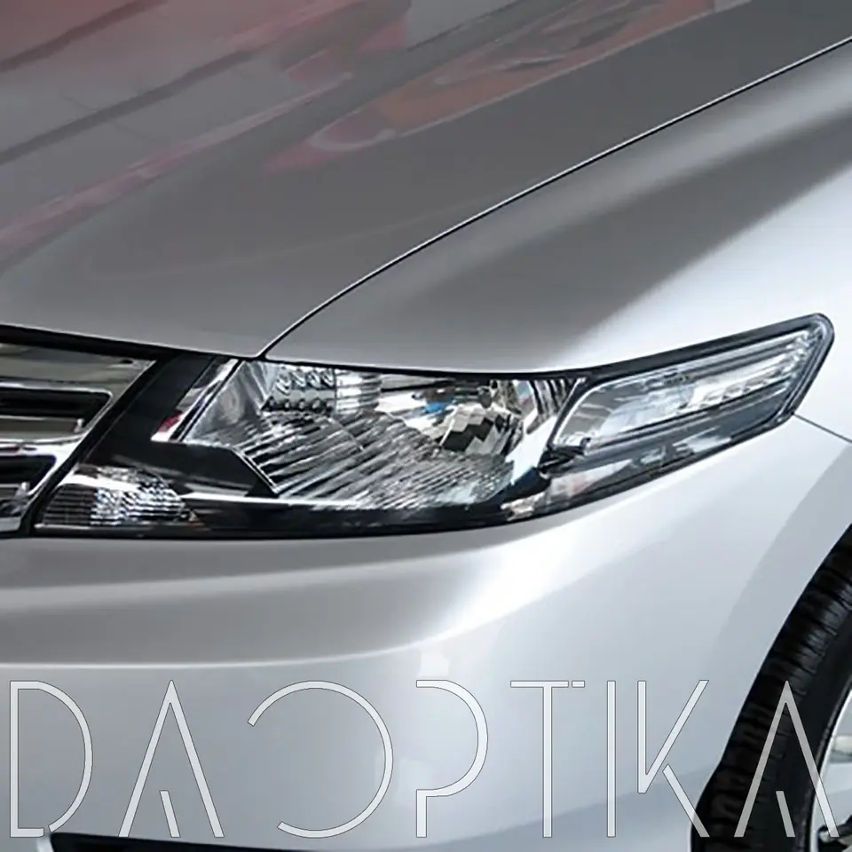 Стекло левой фары из оптического поликарбоната с защитным лаком для замены оригинального стекола фары на Honda City 2008-2014 5 поколение