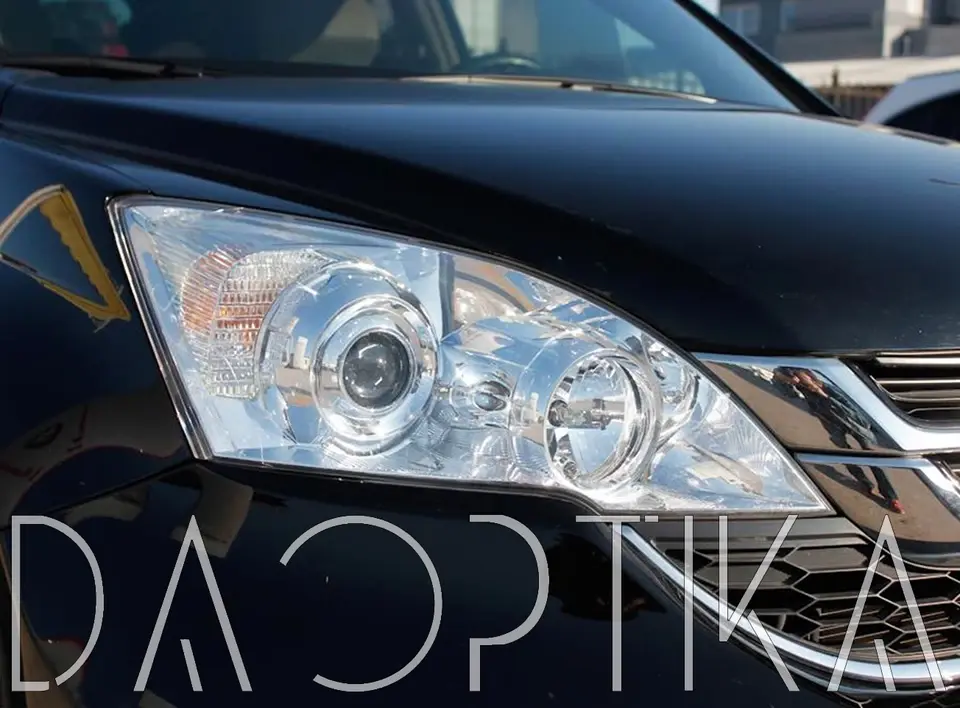 Стекло левой фары из оптического поликарбоната с защитным лаком для замены оригинального стекола фары на Honda CR-V 2006-2012 3 поколение