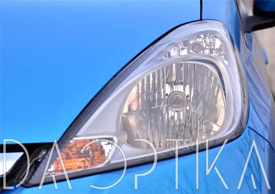 Стекло левой фары из оптического поликарбоната с защитным лаком для замены оригинального стекола фары на Honda Jazz 2011-2014 2 поколение [рестайлинг]