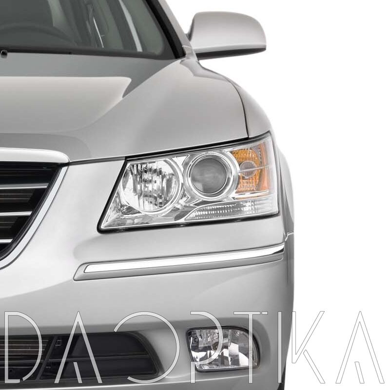 Стекло левой фары из оптического поликарбоната с защитным лаком для замены оригинального стекола фары на Hyundai Sonata 2008-2010 NF [рестайлинг]