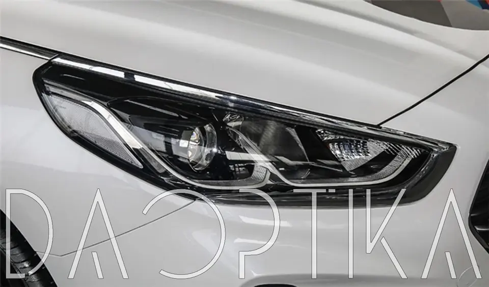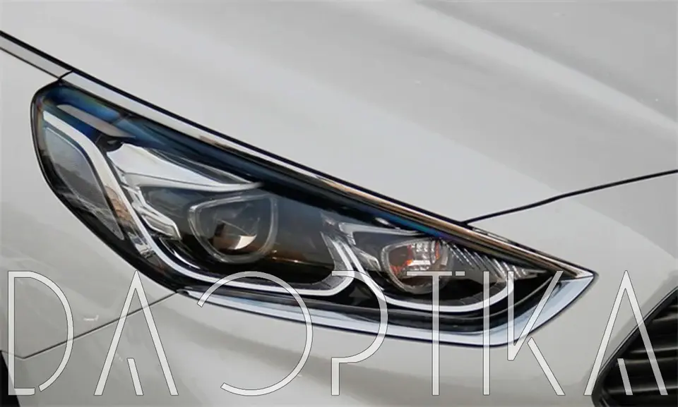 Стекло левой фары из оптического поликарбоната с защитным лаком для замены оригинального стекола фары на Hyundai Sonata 2017-2019 LF [рестайлинг]