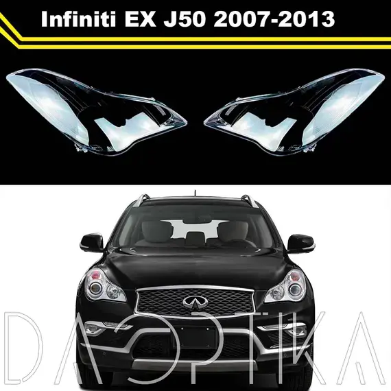 Стекло левой фары из оптического поликарбоната с защитным лаком для замены оригинального стекола фары на Infiniti EX 2007-2013 1 поколение