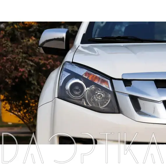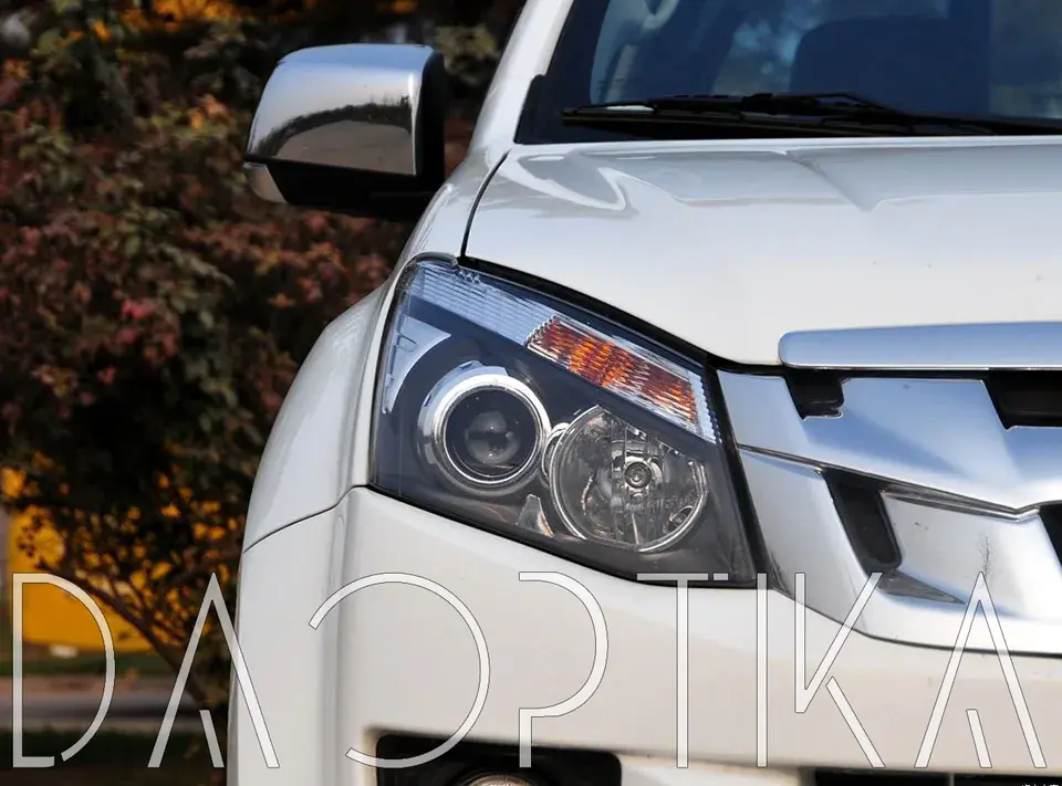 Стекло левой фары из оптического поликарбоната с защитным лаком для замены оригинального стекола фары на Isuzu D-Max 2012-2018 2 поколение