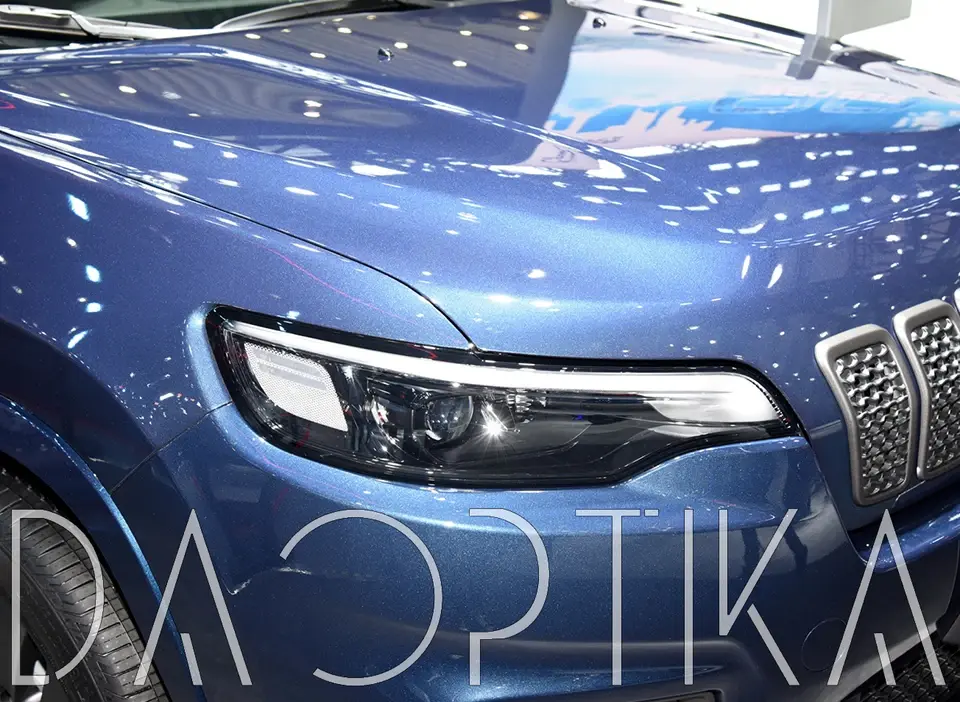 Стекло левой фары из оптического поликарбоната с защитным лаком для замены оригинального стекола фары на Jeep Cherokee 2018-2024 KL [рестайлинг]