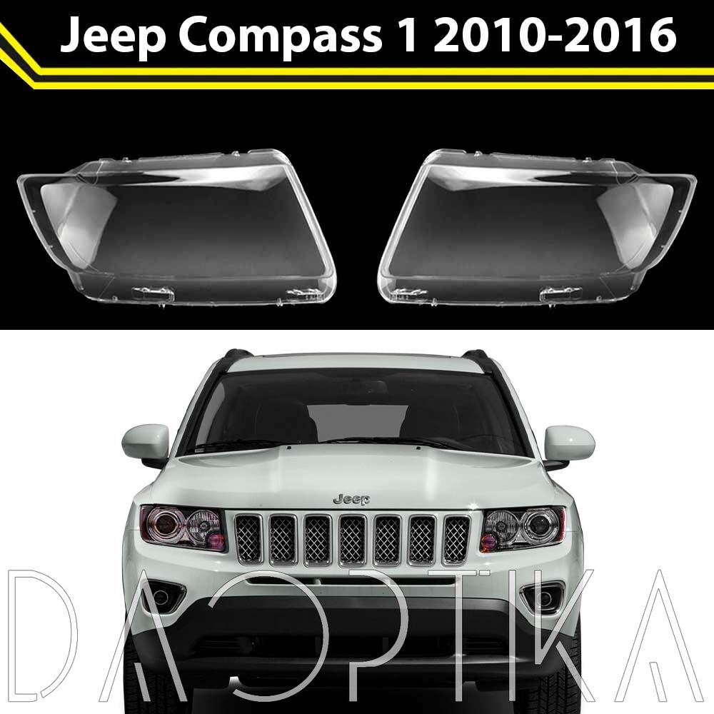 Стекло левой фары из оптического поликарбоната с защитным лаком для замены оригинального стекола фары на Jeep Compass 2010-2016 1 поколение [рестайлинг]