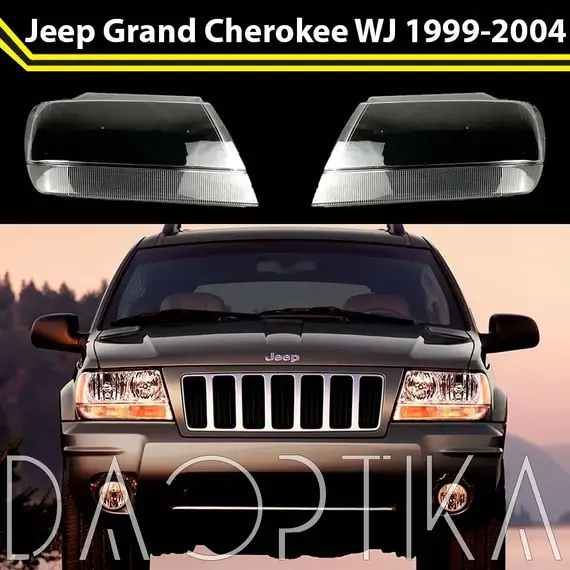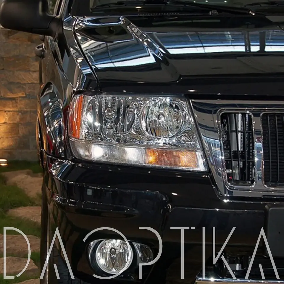Стекло левой фары из оптического поликарбоната с защитным лаком для замены оригинального стекола фары на Jeep Grand Cherokee 1999-2004 WJ