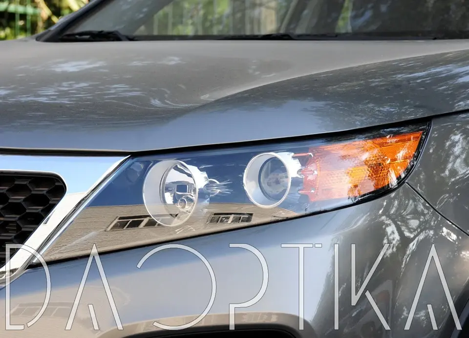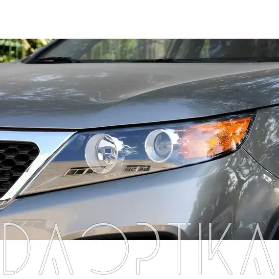 Стекло левой фары из оптического поликарбоната с защитным лаком для замены оригинального стекола фары на Kia Sorento 2009-2012 2 поколение