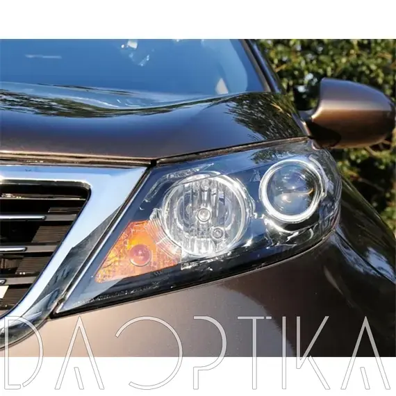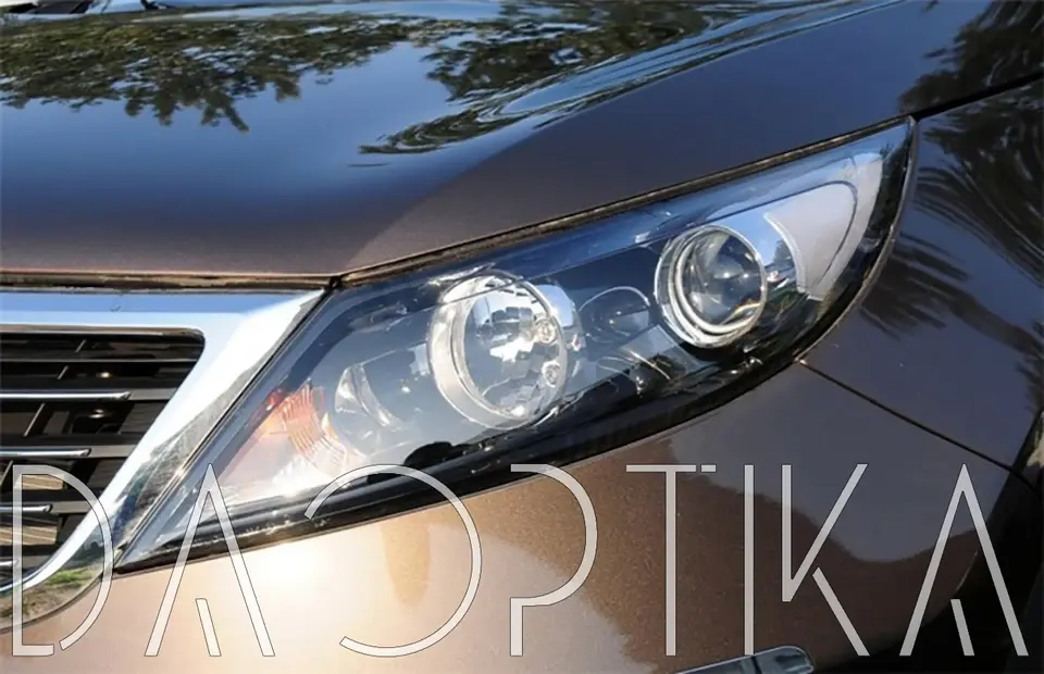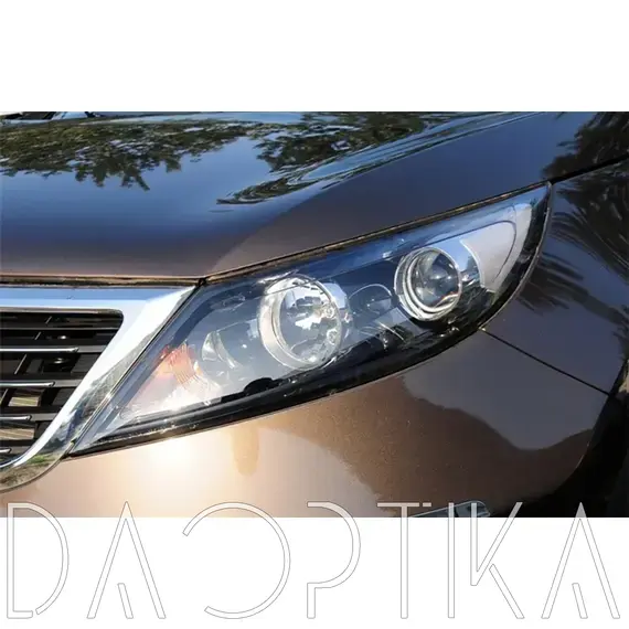 Стекло левой фары из оптического поликарбоната с защитным лаком для замены оригинального стекола фары на Kia Sportage 2010-2016 3 поколение