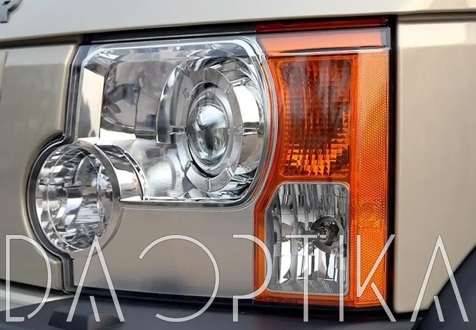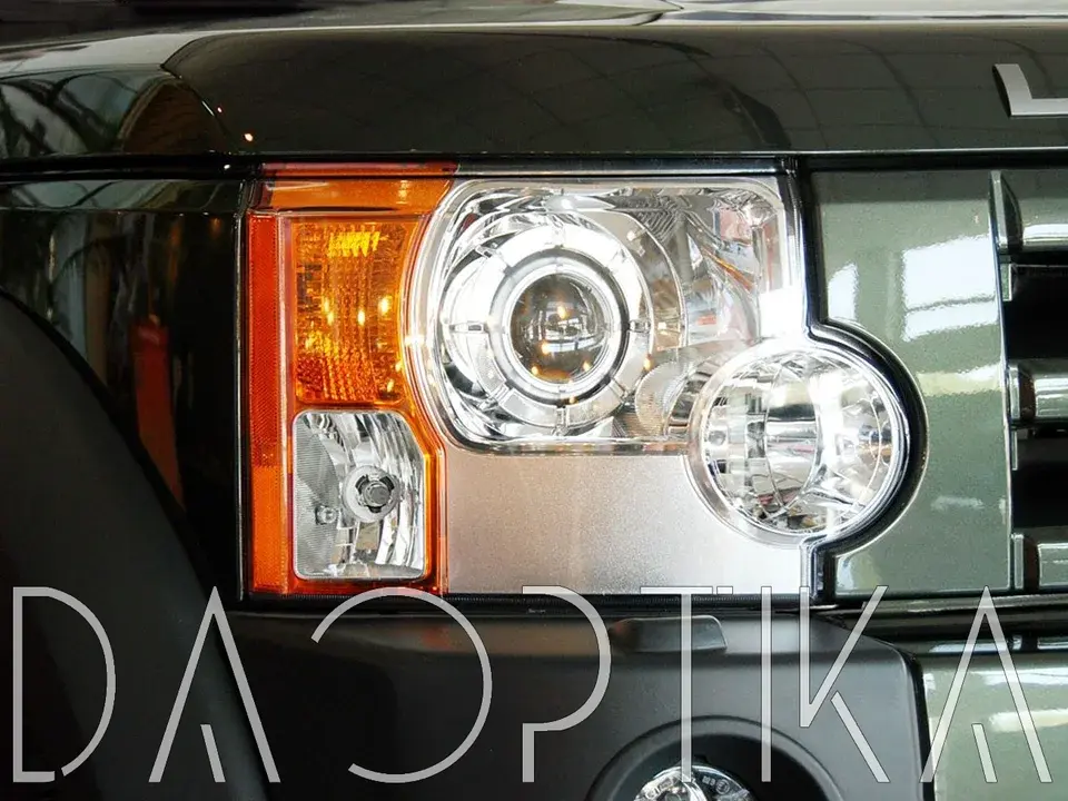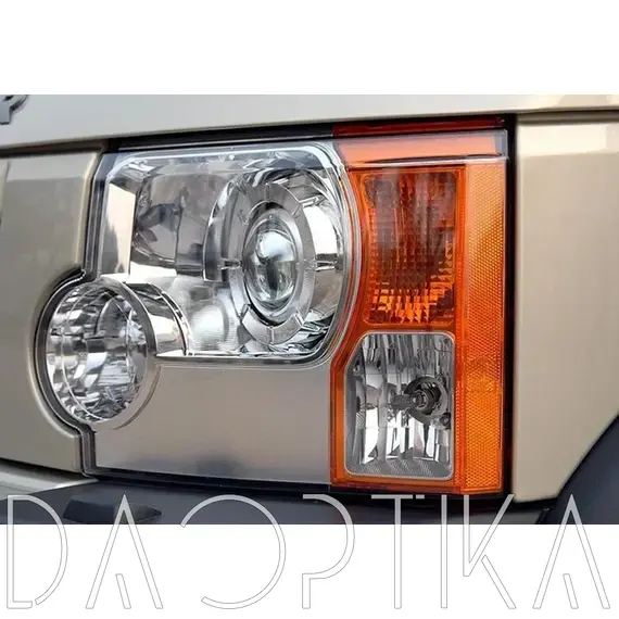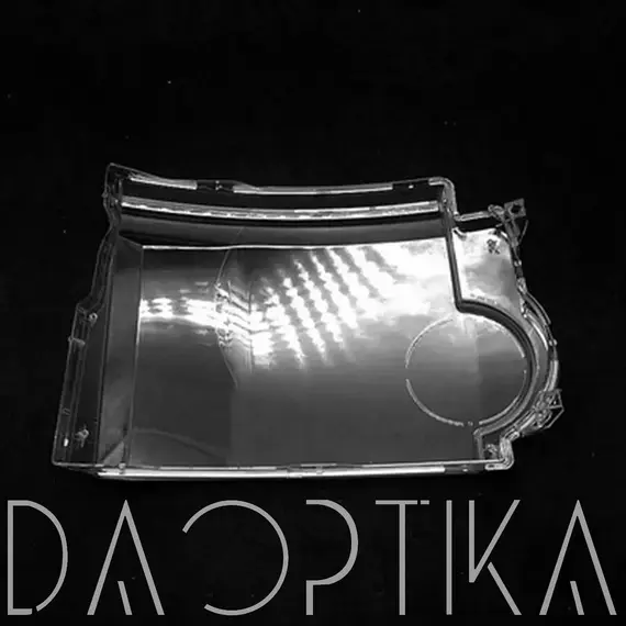 Стекло левой фары из оптического поликарбоната с защитным лаком для замены оригинального стекола фары на Land Rover Discovery 2004-2009 3 поколение