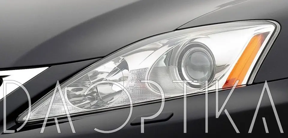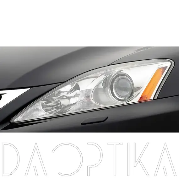 Стекло левой фары из оптического поликарбоната с защитным лаком для замены оригинального стекола фары на Lexus IS 2005-2010 XE20