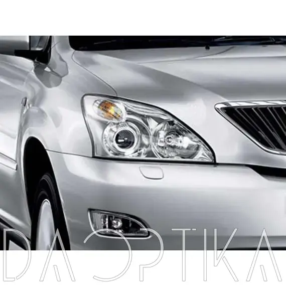 Стекло левой фары из оптического поликарбоната с защитным лаком для замены оригинального стекола фары на Lexus RX 2003-2009 2 поколение