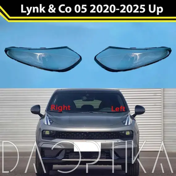Стекло левой фары из оптического поликарбоната с защитным лаком для замены оригинального стекола фары на Lynk & Co 05 2020-2024