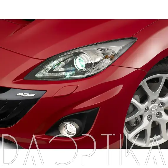 Стекло левой фары из оптического поликарбоната с защитным лаком для замены оригинального стекола фары на Mazda 3 2008-2013 BL