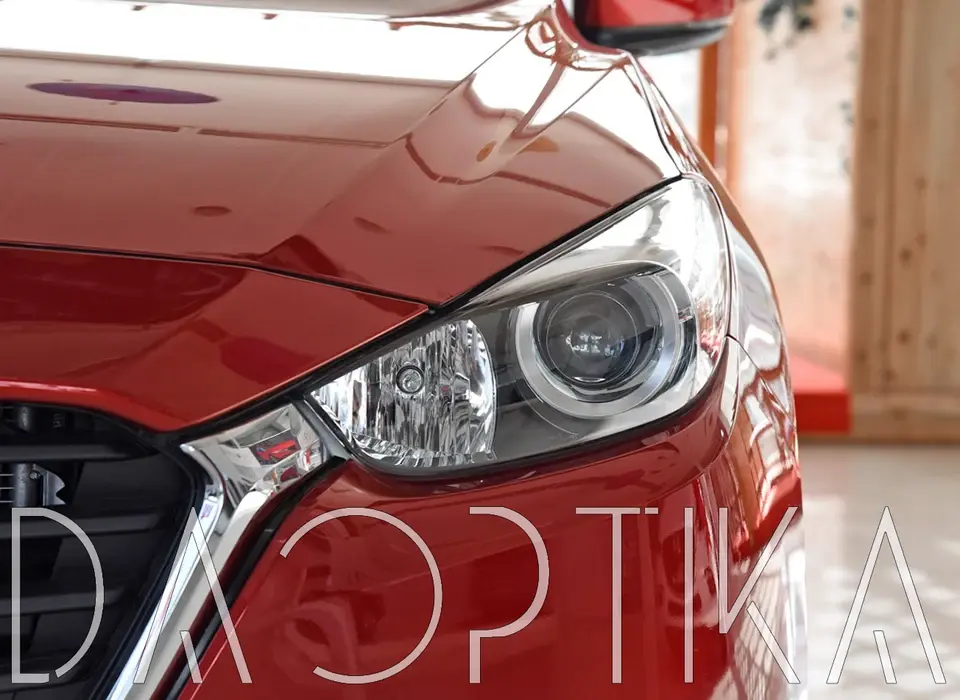 Стекло левой фары из оптического поликарбоната с защитным лаком для замены оригинального стекола фары на Mazda 3 2016-2019 BM [рестайлинг]