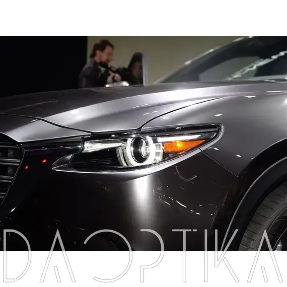 Стекло левой фары из оптического поликарбоната с защитным лаком для замены оригинального стекола фары на Mazda CX-9 2016-2024 2 поколение