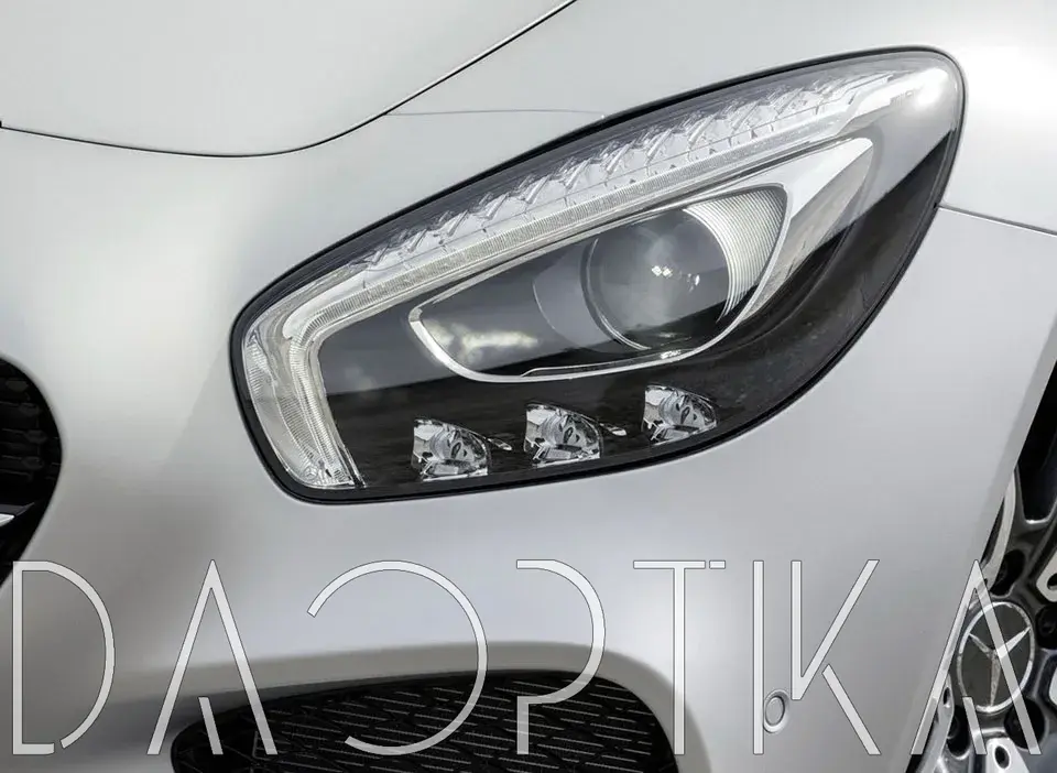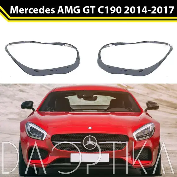 Стекло левой фары из оптического поликарбоната с защитным лаком для замены оригинального стекола фары на Mercedes-Benz AMG GT 2014-2017 C190