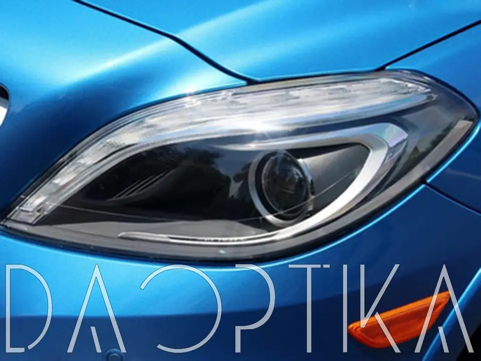 Стекло левой фары из оптического поликарбоната с защитным лаком для замены оригинального стекола фары на Mercedes-Benz B-Class 2011-2015 W246