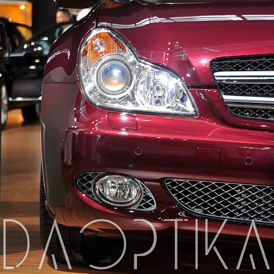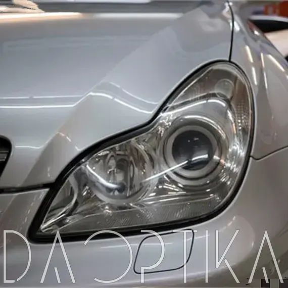 Стекло левой фары из оптического поликарбоната с защитным лаком для замены оригинального стекола фары на Mercedes-Benz CLS-Class 2004-2010 C219