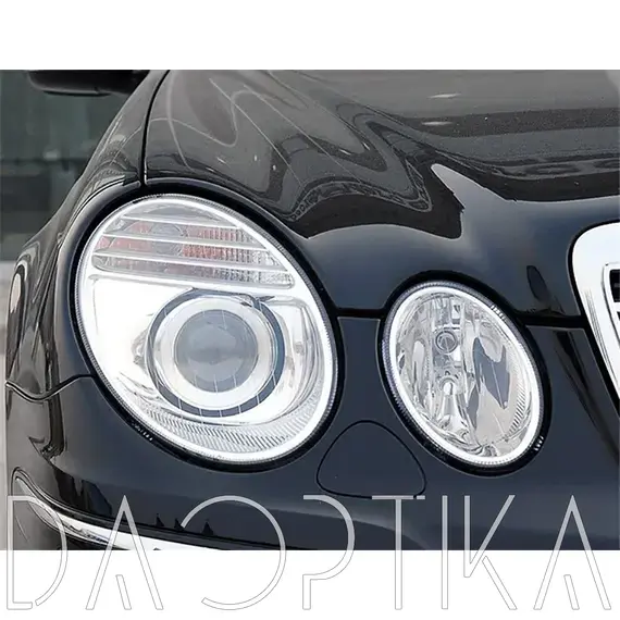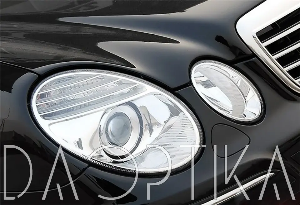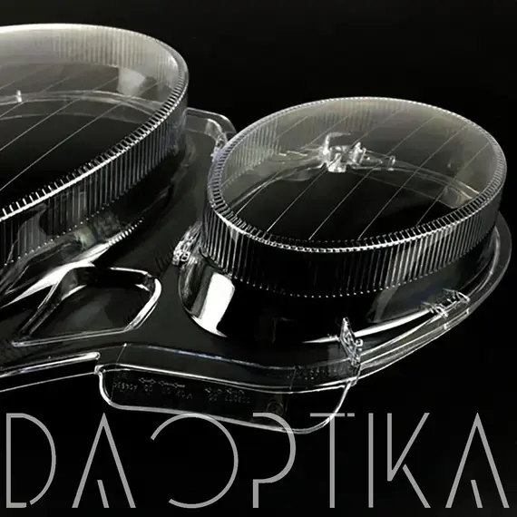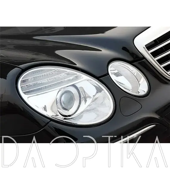Стекло левой фары из оптического поликарбоната с защитным лаком для замены оригинального стекола фары на Mercedes-Benz E-Class 2002-2009 W211/S211