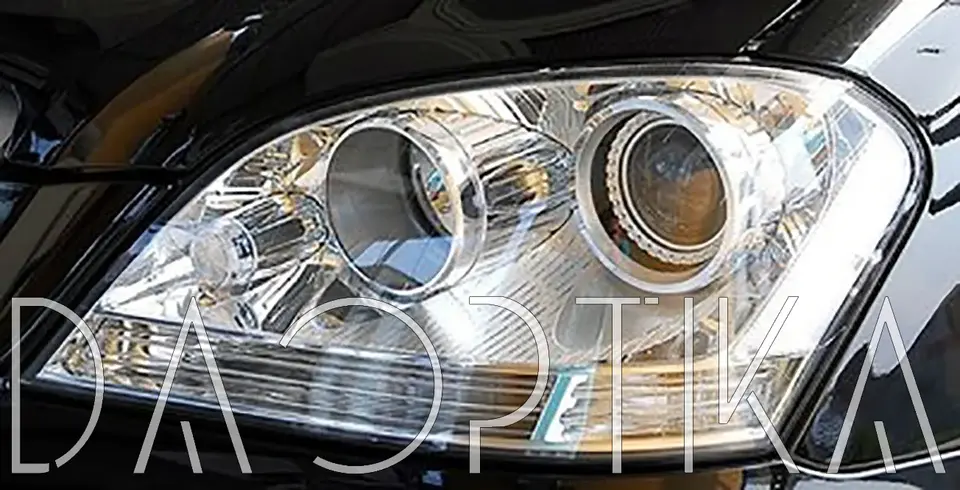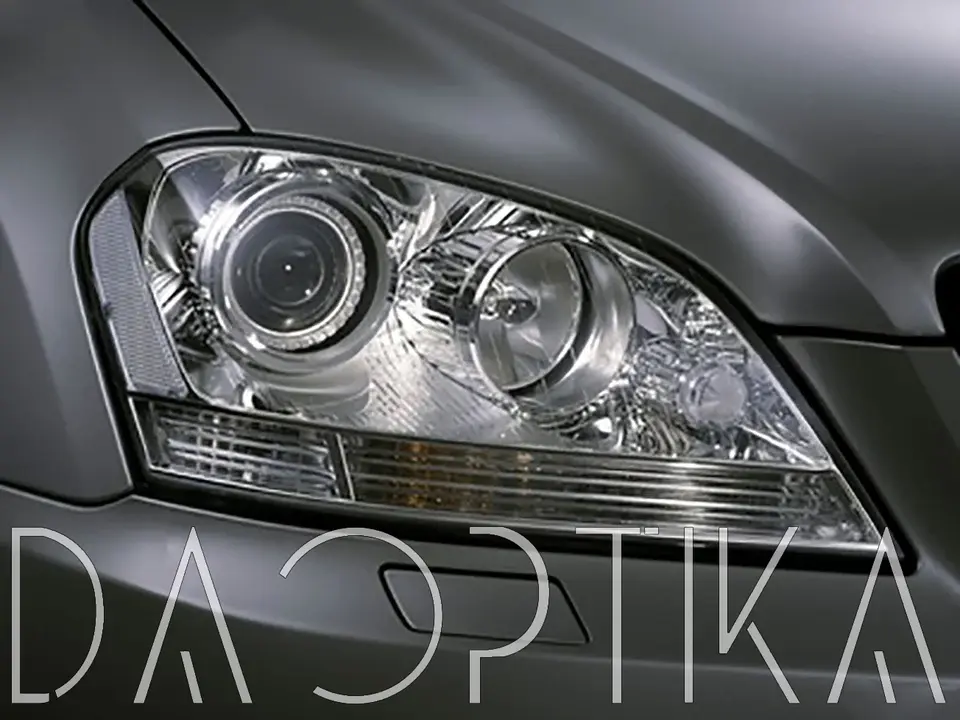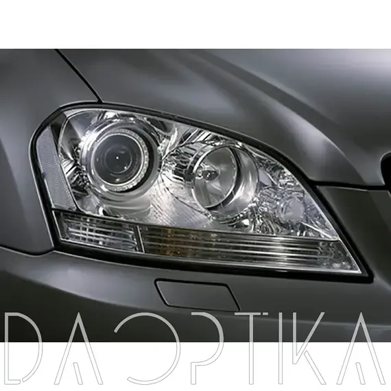 Стекло левой фары из оптического поликарбоната с защитным лаком для замены оригинального стекола фары на Mercedes-Benz M-Class 2005-2008 W164
