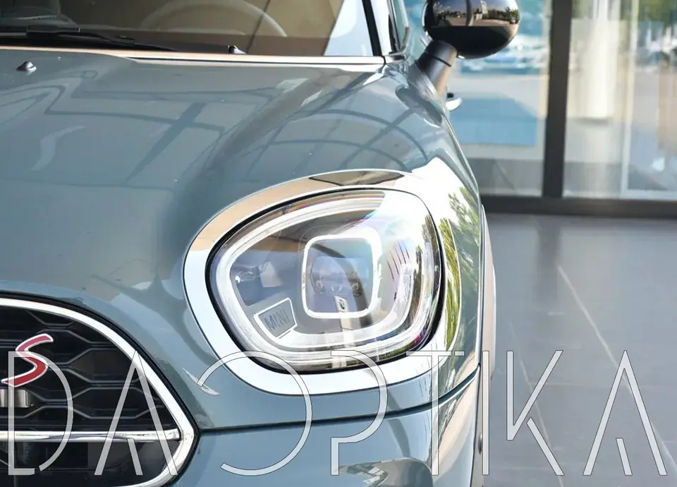 Стекло левой фары из оптического поликарбоната с защитным лаком для замены оригинального стекола фары на Mini Cooper Countryman 2016-2024 F60