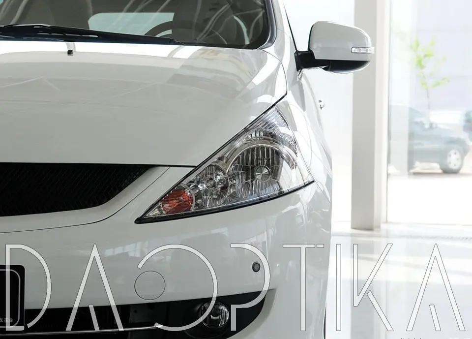 Стекло левой фары из оптического поликарбоната с защитным лаком для замены оригинального стекола фары на Mitsubishi Grandis 2003-2011 1 поколение