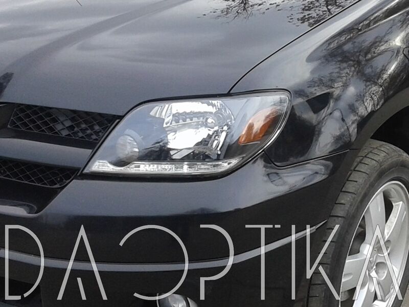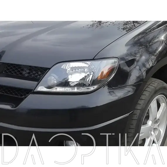 Стекло левой фары из оптического поликарбоната с защитным лаком для замены оригинального стекола фары на Mitsubishi Outlander 2001-2008 1 поколение