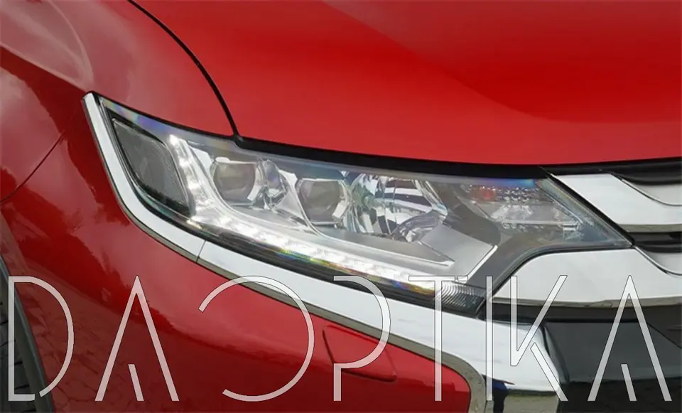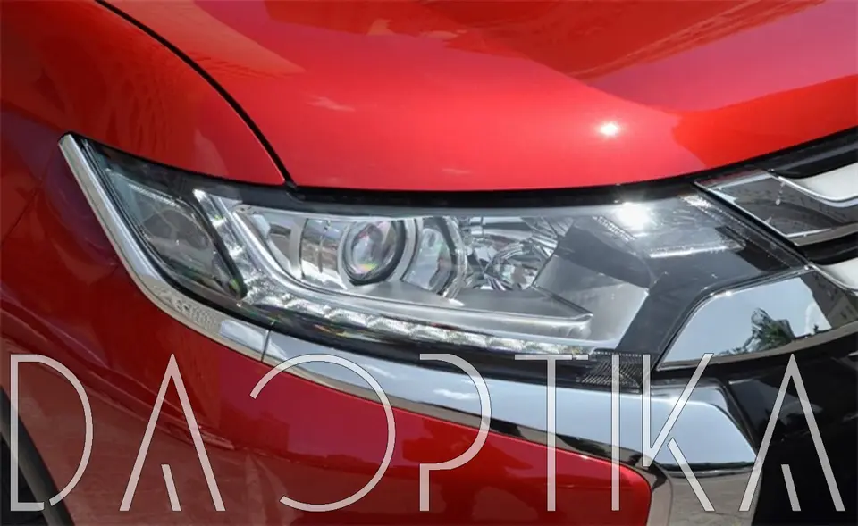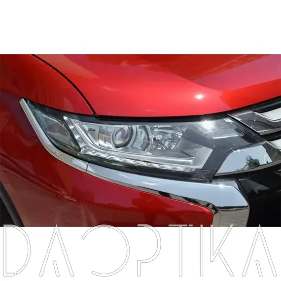 Стекло левой фары из оптического поликарбоната с защитным лаком для замены оригинального стекола фары на Mitsubishi Outlander 2015-2023 3 поколение [2-й рестайлинг]