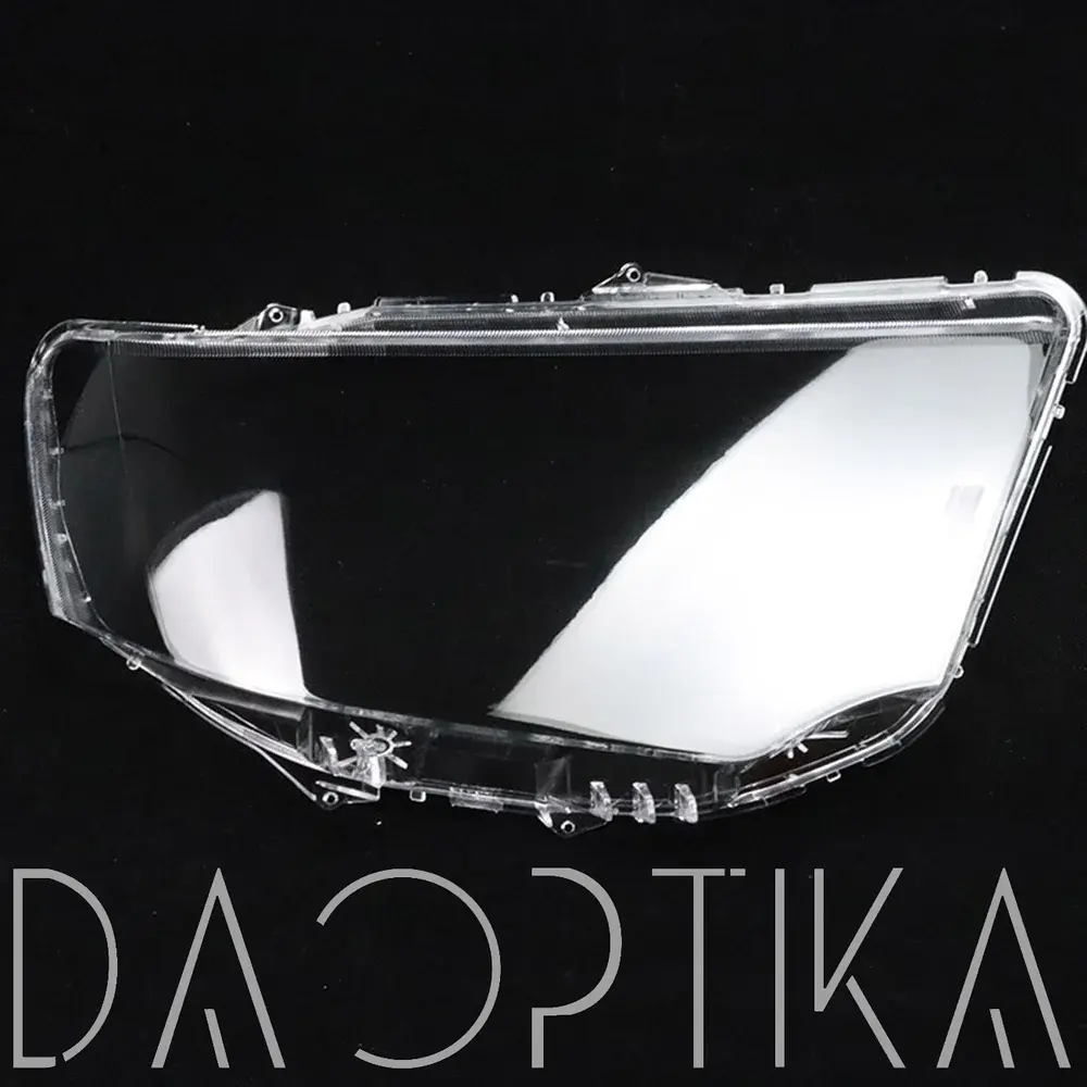Стекло левой фары из оптического поликарбоната с защитным лаком для замены оригинального стекола фары на Mitsubishi Pajero Sport 2008-2016 2 поколение