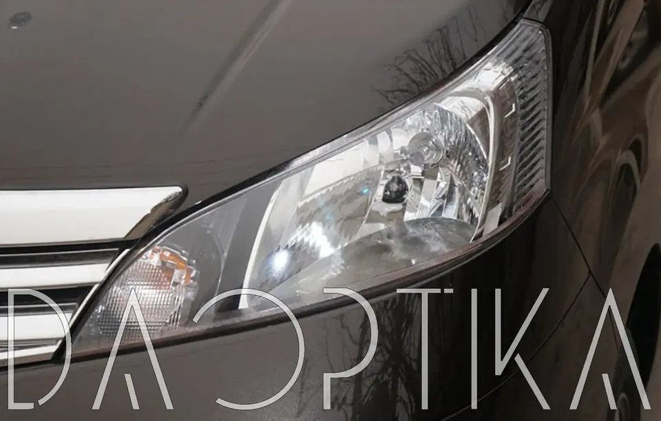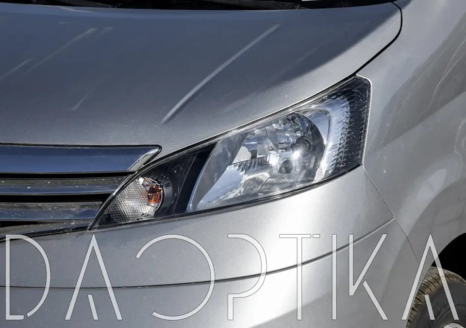 Стекло левой фары из оптического поликарбоната с защитным лаком для замены оригинального стекола фары на Nissan NV200 2009-2024 1 поколение