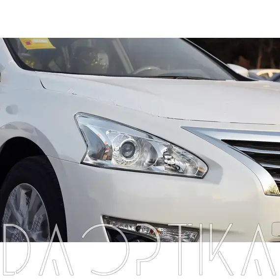 Стекло левой фары из оптического поликарбоната с защитным лаком для замены оригинального стекола фары на Nissan Teana 2013-2020 L33