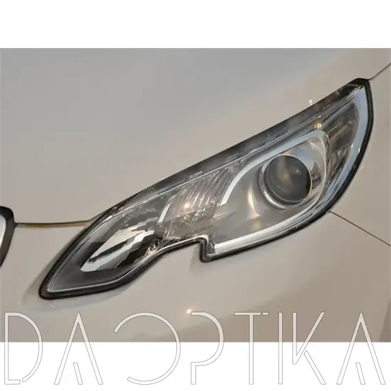 Стекло левой фары из оптического поликарбоната с защитным лаком для замены оригинального стекола фары на Peugeot 2008 2013-2016 1 поколение