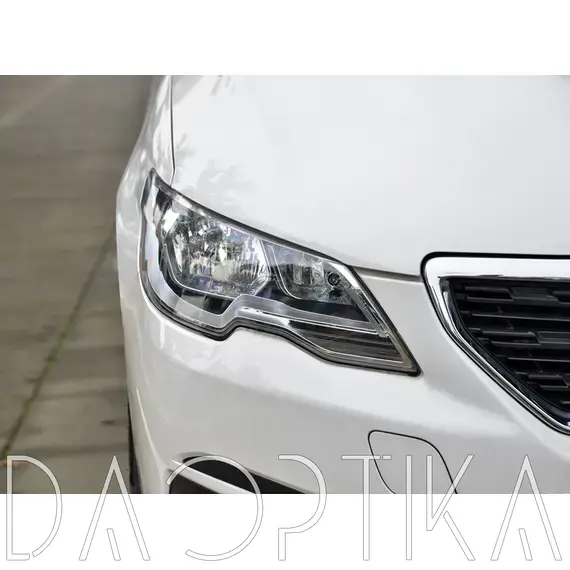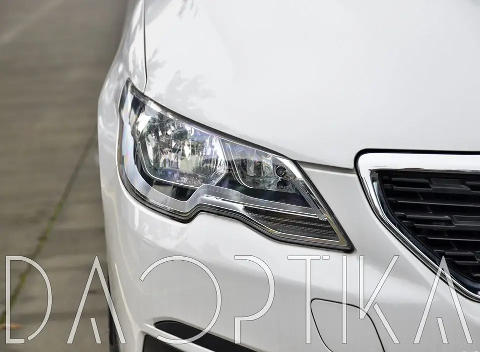 Стекло левой фары из оптического поликарбоната с защитным лаком для замены оригинального стекола фары на Peugeot 301 2016-2024 1 поколение [рестайлинг]