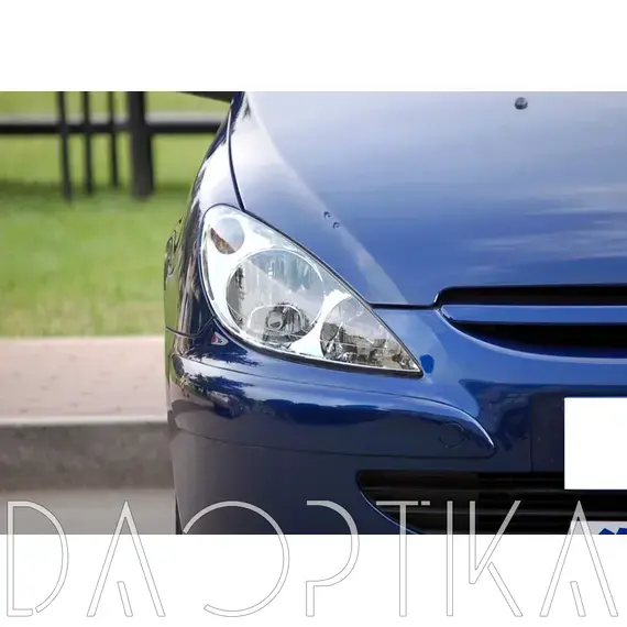 Стекло левой фары из оптического поликарбоната с защитным лаком для замены оригинального стекола фары на Peugeot 307 2001-2005 1 поколение