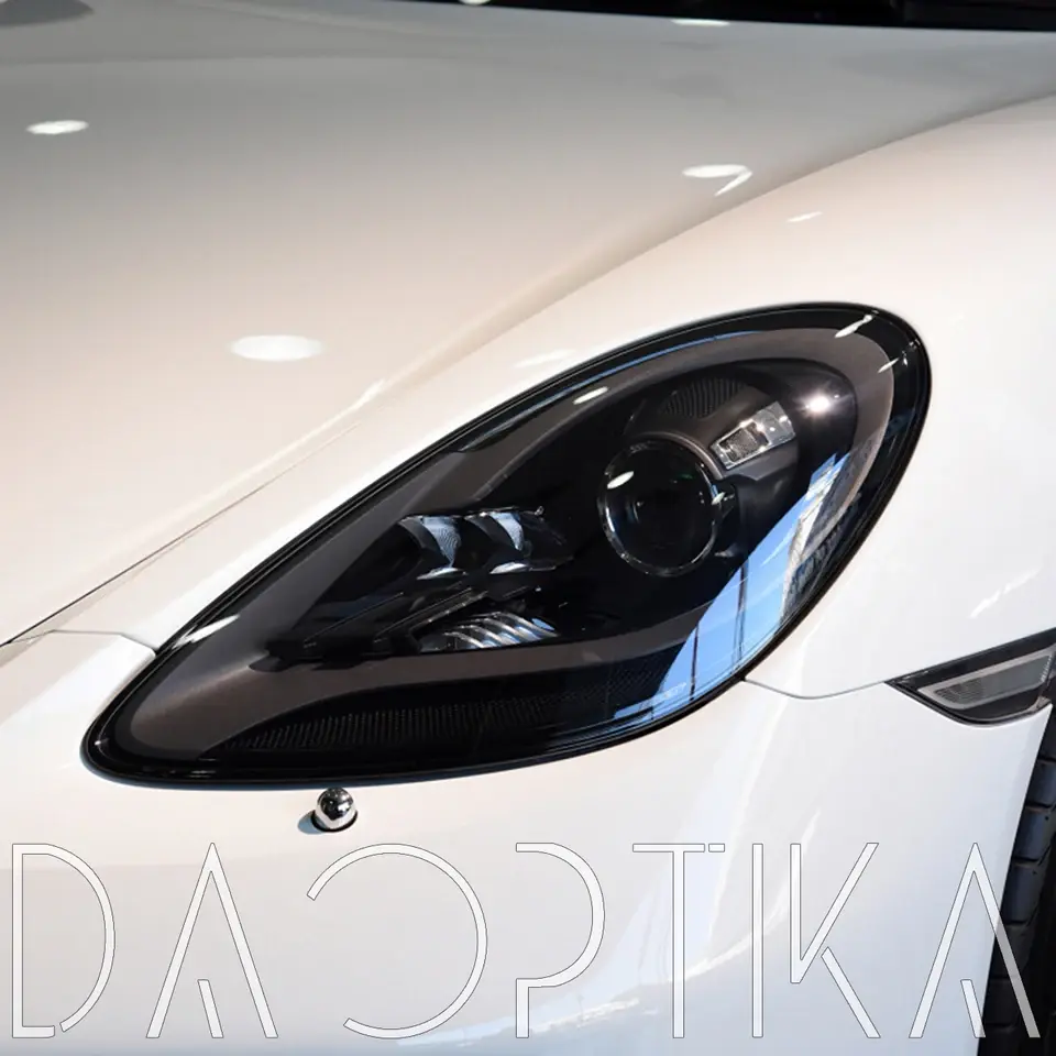 Стекло левой фары из оптического поликарбоната с защитным лаком для замены оригинального стекола фары на Porsche Boxster 2016-2024 982/718