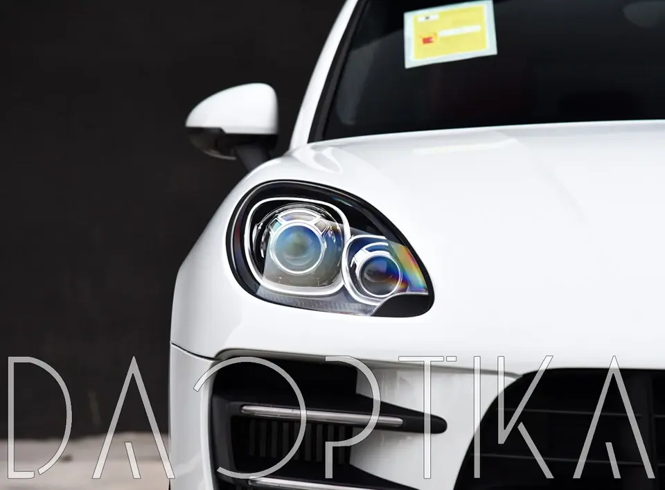 Стекло левой фары из оптического поликарбоната с защитным лаком для замены оригинального стекола фары на Porsche Macan 2014-2018 1 поколение